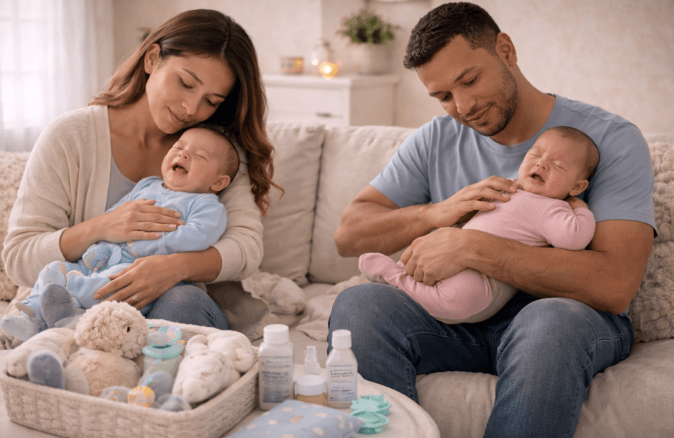 Cólicas em Gêmeos: Como Aliviar o Desconforto dos Dois ao Mesmo Tempo?