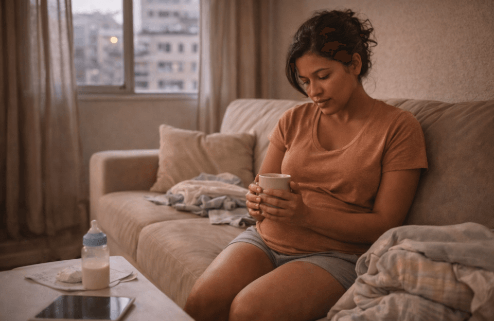 Pequenos rituais de conexão externa: Uma ligação de vídeo com uma amiga que não é mãe, ou ouvir um podcast que te interesse, ajuda a lembrar que o mundo ainda existe e você faz parte dele.